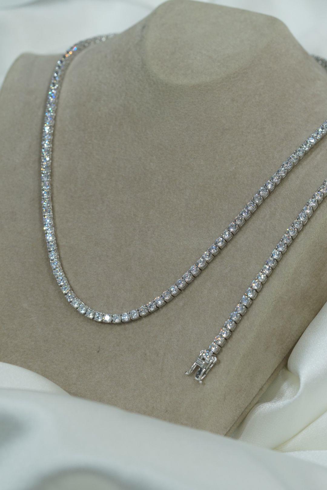 925 ayar gümüş üzerine üretilmiştir ve uzun süre parlaklığını koruması için özel koruma ile tamamlanmıştır. 18 cm bilek ölçüsüne uygun tasarımıyla, zarif bir şekilde bileği sarar. 2.5 mm, 3 mm ve 3.5 mm taş seçenekleriyle farklı tarzlara hitap eder.