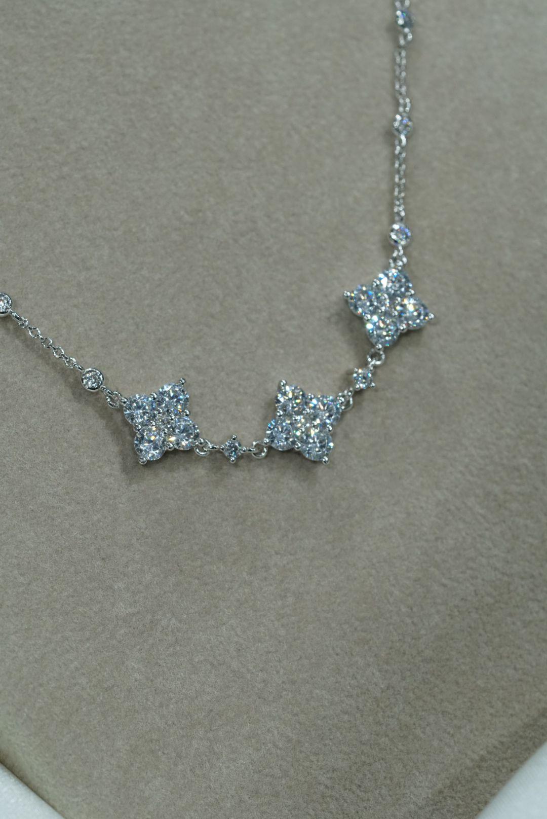 Zarif çizgisi ve modern detaylarıyla Trio Kolye, üç ışıltılı zirkon motifin kusursuz uyumundan ilham alır. Her biri özenle monte edilmiş pırlanta kesim zirkon taşlar, ışığı büyüleyici biçimde yansıtarak zamansız bir şıklık oluşturur. 925 ayar gümüşten üretilen kolye, özel koruma kaplaması sayesinde uzun süre parlaklığını korur. Hem günlük kombinlerde zarif bir tamamlayıcı, hem de özel davetlerde dikkat çekici bir dokunuş sunar.